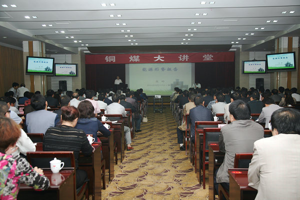 9月17日上午,公司銅煤大講堂第四期講座在煤業(yè)賓館開講。講座邀請(qǐng)中國(guó)能源研究會(huì)副理事長(zhǎng),國(guó)家能源局原副局長(zhǎng)吳吟,為聽(tīng)取講座人員就當(dāng)前能源形勢(shì)作了精彩的專題講座。公司黨政領(lǐng)導(dǎo)王蓬、郭寶輝、劉啟科、徐捷、師同民、李先鋒,公司各副總,機(jī)關(guān)各部室負(fù)責(zé)人及相關(guān)人員,基層各單位黨政主要領(lǐng)導(dǎo)及有關(guān)副處級(jí)領(lǐng)導(dǎo)、財(cái)務(wù)科長(zhǎng)、規(guī)劃科長(zhǎng)、組干部長(zhǎng)共200余人聆聽(tīng)了講座。