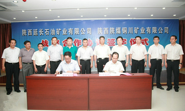 隨后,銅川礦業(yè)公司執(zhí)行董事、總經(jīng)理王蓬,陜西延長(zhǎng)石油礦業(yè)公司執(zhí)行董事、黨委書記種欣睿代表雙方在戰(zhàn)略合作協(xié)議上簽字,標(biāo)志著銅川礦業(yè)公司與陜西延長(zhǎng)石油礦業(yè)公司的戰(zhàn)略合作邁上了新的臺(tái)階。