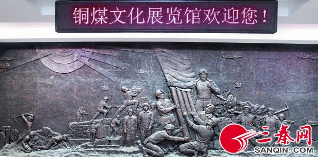 展覽館建成2年,總建筑面積1900平方米,分設(shè)印象、溯源、發(fā)展、奮進四廳。剛一進入,“礦工萬歲”的巨型浮雕,蕩氣回腸的銅煤賦吟誦,還有大型環(huán)幕投影紀實片《百里銅煤耀華夏》,即以迅疾恢宏之勢,將人們瞬間帶入煤炭和礦工的世界。