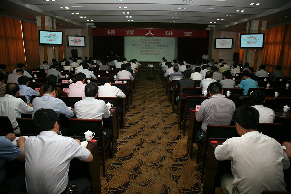 5月29日下午,公司銅煤大講堂第二期講座在煤業(yè)賓館開講。講座邀請經(jīng)濟學博士、中國人民大學世界經(jīng)濟研究中心主任、中國人民大學原經(jīng)濟學院院長黃衛(wèi)平教授,為聽取講座人員就當前經(jīng)濟形勢作了精彩的專題講座。公司領導郭寶輝、徐捷、師同民、公司各副總、公司機關各部室負責人、公司所屬各單位有關領導、管理干部和相關人員,共190余人聆聽了講座。