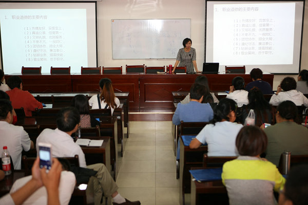 培訓(xùn)專門聘請(qǐng)陜西工運(yùn)學(xué)院旅游系教師授課,使參加培訓(xùn)人員聽后受益匪淺?!斗?wù)禮儀》、《餐飲服務(wù)管理》、《酒店從業(yè)人員職業(yè)道德與崗位職責(zé)》、《酒店文化》、《形體訓(xùn)練》、《服務(wù)質(zhì)量管理》《、餐飲服務(wù)實(shí)操》等培訓(xùn)內(nèi)容,課程設(shè)置合理,融理論授課和現(xiàn)場(chǎng)實(shí)操于一體,使學(xué)員從感官上、從實(shí)踐上接受了系統(tǒng)培訓(xùn),提升了綜合素質(zhì),掌握了一技之長(zhǎng)。