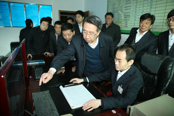 黃玉治一行到礦后,到該礦瓦斯監(jiān)測監(jiān)控室、生產(chǎn)調(diào)度室,查看了該礦安全生產(chǎn)、瓦斯治理、安全監(jiān)測工作進(jìn)展情況。隨后,在陜西煤礦安全監(jiān)察局局長張學(xué)常主持下,在該礦調(diào)度會議室召開了座談會。