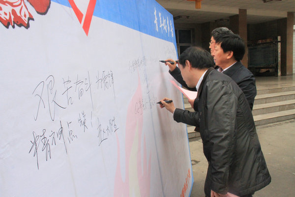 在“青年好聲音——我為雷鋒精神點(diǎn)個(gè)贊”活動(dòng)簽名板上簽名并寄語青年