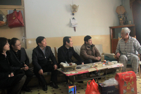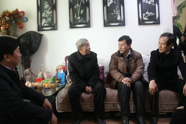 隨后,趙大勝一行到公司退休干部石新潤和公司離休干部、歌曲《唱支山歌給黨聽》詞作者姚筱舟家中看望慰問了兩位老人,并送上了慰問品。