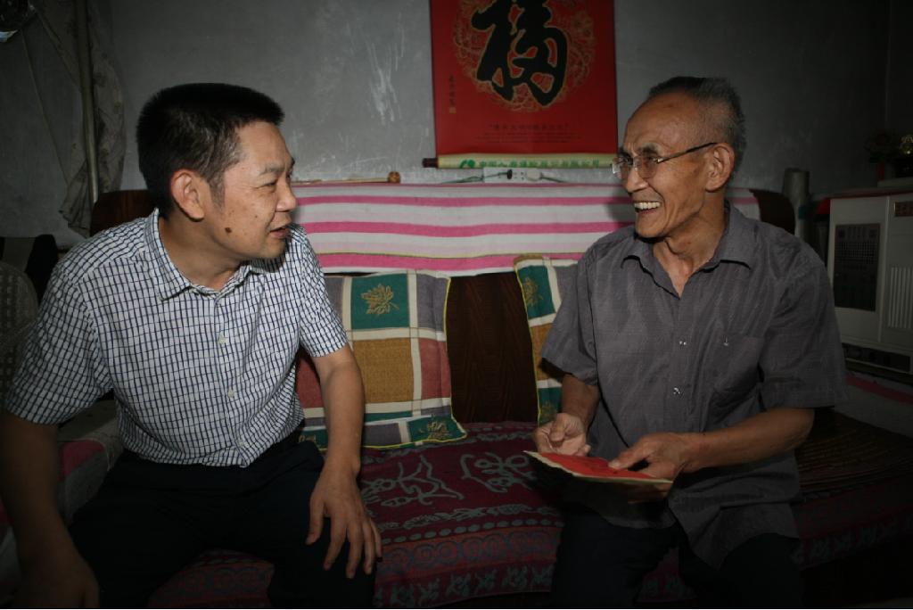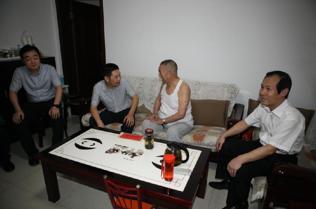 王海帆一行隨后輕車簡從來到家住地勘公司家屬區(qū)3號樓的郭景順家走訪慰問。郭景順今年已經(jīng)91歲高齡,他1944年參加革命,1948年入黨,是位老干部、老軍人,在原局地質(zhì)勘探公司工作離休至今。由于年事已高,他反復(fù)激動地說,感謝陜煤集團(tuán)王書記和銅川礦業(yè)公司的領(lǐng)導(dǎo)都來看望我,黨的政策好啊,現(xiàn)在啥都不缺,就是記性差,愛忘事。王海帆關(guān)切地詢問郭景順有幾個孩子,身體怎么樣?他說,我有八個孩子,有的在西安,有的在銅川,現(xiàn)在生活好,吃穿不愁。我身體還行,雖然有老年病,但吃飯、走路沒問題,感謝企業(yè)黨組織的關(guān)懷。王海帆欣慰地說,聽說您有幾個孩子在銅川,經(jīng)常照顧您,這樣我們就放心了。您老有困難可向組織反映,要保重身體,安享晚年。公司領(lǐng)導(dǎo)王蓬、劉水利也關(guān)切地詢問老人家里的情況,與老人親切交談,并表示銅川礦業(yè)公司將進(jìn)一步關(guān)心企業(yè)離退休老領(lǐng)導(dǎo)、老同志,真正體現(xiàn)出組織的關(guān)懷和溫暖。