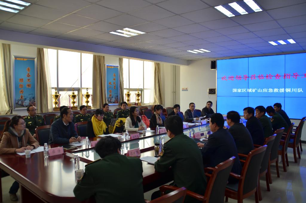 當(dāng)天上午,考察組一行四人,在國家行政學(xué)院應(yīng)急培訓(xùn)管理中心國際合作處處長劉萍、災(zāi)害風(fēng)險管理全球倡議中國區(qū)項目高級顧問李欣帶領(lǐng)下,深入國家區(qū)域礦山應(yīng)急救援銅川隊就應(yīng)急救援隊伍建設(shè)與管理等工作進(jìn)行了調(diào)研指導(dǎo)。陜西省應(yīng)急辦副主任吳晨、值守處副處長張波,銅川市政府副秘書長王永平、銅川市應(yīng)急辦副主任鄭升明,銅川礦業(yè)公司副總工程師、總調(diào)度長何思仁及國家區(qū)域礦山應(yīng)急救援銅川隊負(fù)責(zé)人陪同參加了考察調(diào)研。