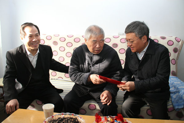 隨后,祝列克副省長一行深入困難職工家庭,看望慰問了全國勞動模范、五屆、六屆全國人大代表徐殿明和困難黨員張克勤。在徐殿明家,祝列克說,你們老一輩礦山建設者曾經為銅川礦區(qū)和陜西煤炭事業(yè)做出了積極貢獻,快過春節(jié)了,我代表省委省政府來給徐老拜個年,希望徐老保重身體,快樂幸福。在張克勤家,祝列克詳細詢問了張克勤的家庭困難情況和他老伴的病情,并對隨行人員說,老黨員是我們黨的寶貴財富,要關心他們的生活,切實做好幫扶工作,給他們以鼓勵和支持,同時希望在黨組織的關懷溫暖下,堅定信心,克服困難,積極發(fā)揮老黨員作用,為企業(yè)發(fā)展建言獻策。