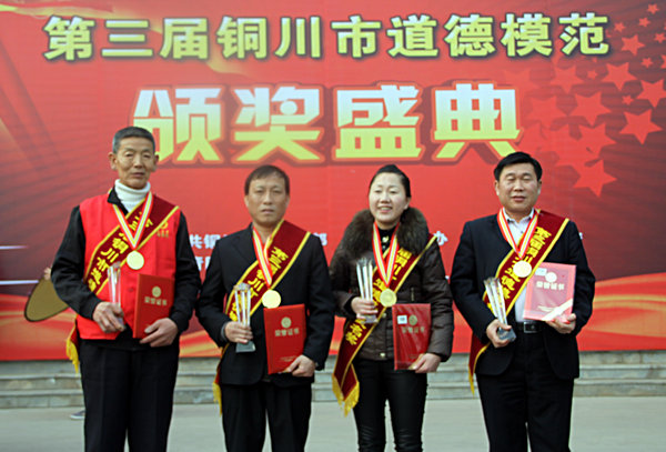 元月15日,銅川市第三屆道德模范表彰大會(huì)在新區(qū)圖書館報(bào)告大廳隆重舉行。我公司陳萬(wàn)秀被授予“銅川市第三屆道德模范”稱號(hào),雷建波、康紅牛、曹小紅喜獲“銅川市第三屆道德模范提名獎(jiǎng)”殊榮。