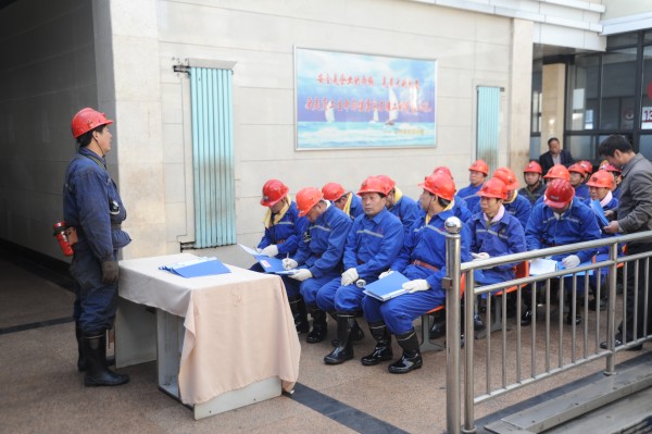 隨后,檢查團分為井下、地面兩組進行檢查。入井前,檢查團成員進入安全確認(rèn)室,接受入井安全培訓(xùn),按照要求與內(nèi)容,逐一填寫安全確認(rèn)菜單,領(lǐng)取了入井安全許可證。