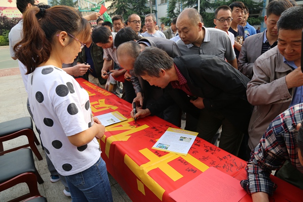 隨后,該礦廣大干部職工在印有“全面落實企業(yè)安全生產(chǎn)主體責(zé)任”的巨型條幅前,列隊舉起右拳,莊嚴的安全宣誓,發(fā)出安全誓詞,向安全鄭重承諾,并在條幅上鄭重的簽上自己的姓名。宣誓簽名后,干部職工一起觀看了典型事故案例展、職業(yè)病危害及防治、安全隱患辨識等方面的安全宣傳掛圖和宣傳單。在安全生產(chǎn)宣傳咨詢點,該礦工程技術(shù)人員還向職工群眾廣泛宣傳企業(yè)依法治安的重大意義和安全生產(chǎn)法律法規(guī)及安全常識,細心提供政策法規(guī)、應(yīng)急救援等方面的有獎問答活動。