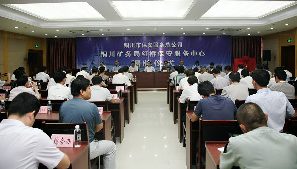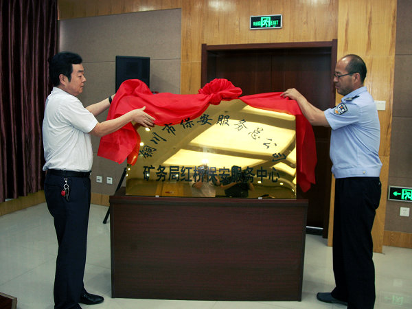 在熱烈的掌聲中,劉水利、景宏亮為銅川礦務(wù)局紅橋保安服務(wù)中心揭牌。