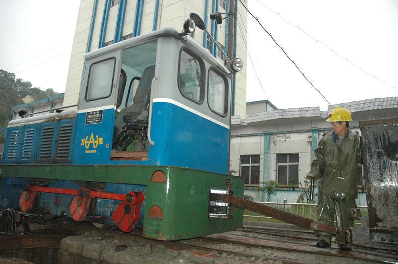 機車司機老朱先圍著心愛的車頭認真查看了一番,又順著道線對鏈接銷子和道岔情況進行了逐一檢查,五分鐘不到,大雨澆透了全身。老朱抹了一把臉上的雨水,發(fā)動了機頭,隨著“突突突”轟鳴聲,一列滿載貨物的礦車被推送到井口。