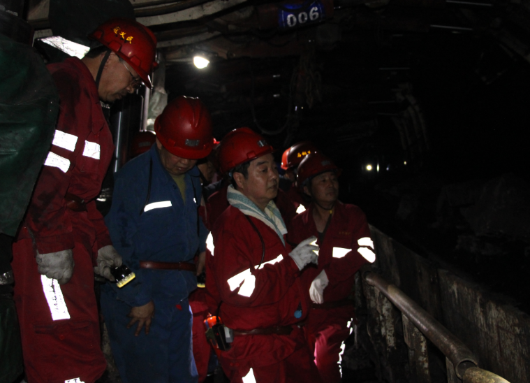 當(dāng)天下午13時(shí),劉水利一行到玉華礦,直接換上工裝,深入井下現(xiàn)場檢查指導(dǎo)安全生產(chǎn)工作。在通往2403綜采工作面的運(yùn)順巷道里,劉水利一邊查看巷道頂板支護(hù)、運(yùn)輸皮帶、巷道錨網(wǎng)支護(hù)等安全狀況,一邊詳細(xì)詢問隨同的玉華礦黨政主要領(lǐng)導(dǎo)近期工作面生產(chǎn)作業(yè)現(xiàn)場遇到的頂板壓力增大、頂板破碎、工作面底板軟底等給安全生產(chǎn)造成的困難情況,仔細(xì)聽了取該礦在遇到生產(chǎn)作業(yè)困難的情況下采取的具體措施和實(shí)施方案。在2403綜采工作面運(yùn)順端頭口,劉水利一邊仔細(xì)查看了綜采機(jī)頭區(qū)域轉(zhuǎn)載機(jī)、前部溜子、綜采支架和頂板、支架地板情況,一邊詢問生產(chǎn)作業(yè)現(xiàn)場的綜采隊(duì)作業(yè)人員,了解工作面遇到的頂板壓力增大、頂板破碎、綜采支架在軟底的情況下生產(chǎn)作業(yè)困難狀況,并認(rèn)真聽取現(xiàn)場作業(yè)人員提出的設(shè)備存在問題、解決綜采支架移架、矯正傾斜、加快推采的辦法和意見。在回順端頭口,劉水利和綜采隊(duì)隊(duì)長、書記、技術(shù)人員等現(xiàn)場作業(yè)人員現(xiàn)場召開專題會,一一聽取現(xiàn)場作業(yè)人員對解決工作面當(dāng)前困難的建議。