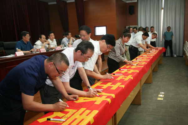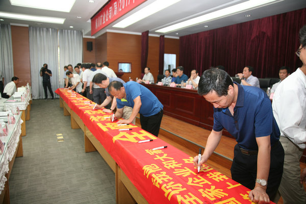 隨后,公司領(lǐng)導(dǎo)及參會(huì)人員在“全面落實(shí)企業(yè)安全生產(chǎn)主體責(zé)任”主題宣傳條幅上鄭重地簽下自己的名字,莊嚴(yán)承諾遵守各項(xiàng)安全管理規(guī)章制度,全面落實(shí)各級(jí)安全生產(chǎn)責(zé)任,強(qiáng)化安全生產(chǎn)監(jiān)督管理,用實(shí)際行動(dòng)確保企業(yè)安全生產(chǎn)。