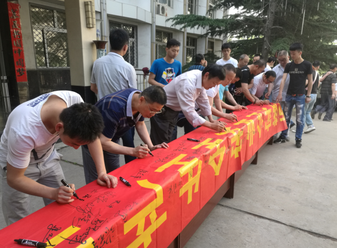 綜采一隊隊長鐘永濤、綜掘二隊隊長朱雙印代表基層單位進(jìn)行表態(tài)發(fā)言。全體干部職工在安全橫幅上簽下自己的姓名,鄭重承諾:堅定實現(xiàn)安全生產(chǎn)、實現(xiàn)安全“零”目標(biāo)的信心不動搖,凝心聚力,為構(gòu)建安全穩(wěn)定和諧的新礦區(qū)而共同努力奮斗。