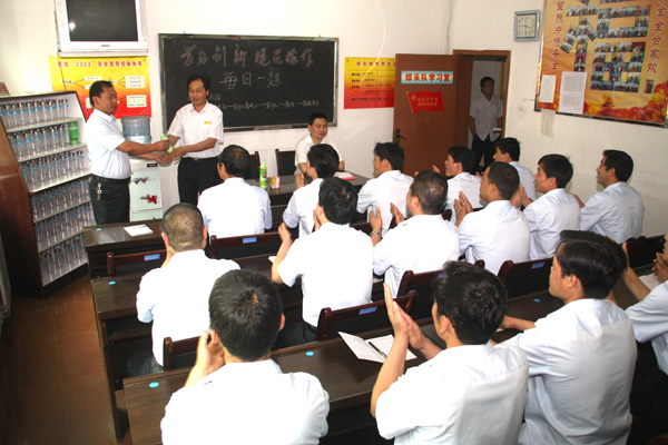 在工作中,他們堅持從每一位職工抓起,從小事抓起,從水桶最低的一塊木板抓起,在職工中深入開展上標準崗、干標準活為內(nèi)容的創(chuàng)文明環(huán)境、做文明職工活動,運用各種載體加強職工業(yè)務(wù)和思想學(xué)習(xí),對不文明生產(chǎn)情況做到當班發(fā)現(xiàn)當班處理,不斷提高職工自覺文明意識。并根據(jù)綜采隊機械化程度高的工作實際,實施了全員培訓(xùn)和實行崗位技術(shù)工資等激勵職工多學(xué)技能的機制,按崗位工種進行工分系數(shù)分配,激勵職工不斷學(xué)習(xí),有力增強職工們的凝聚力和感召力。