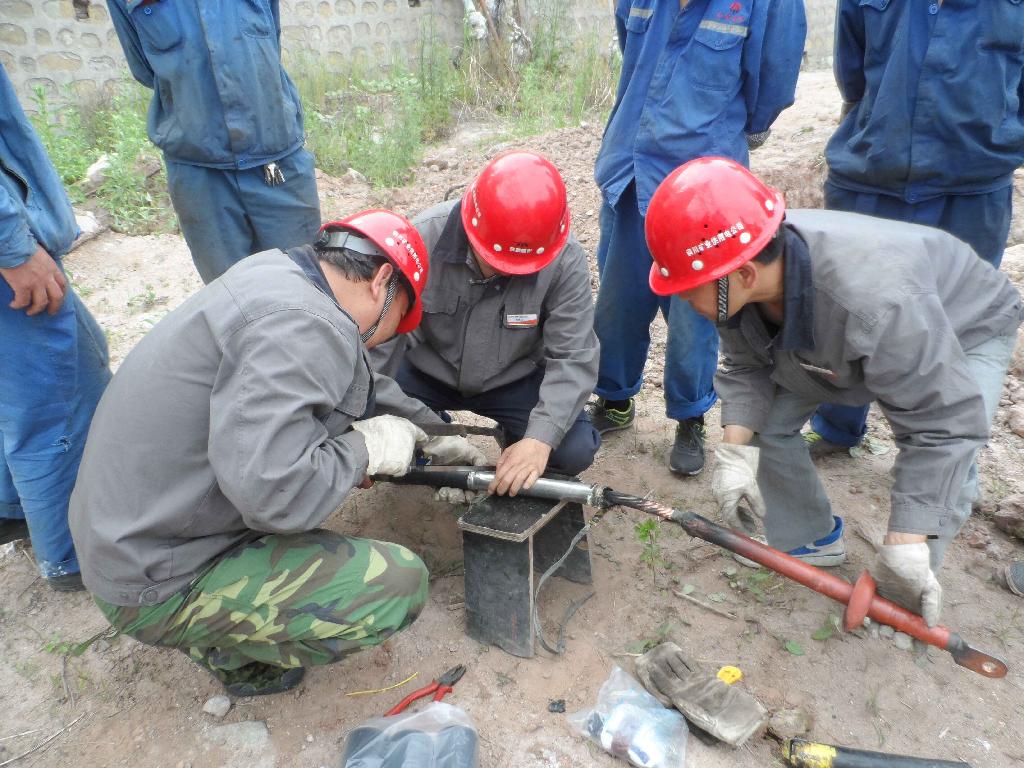 這時,午飯時間早已過去,電纜修復(fù)工作才剛剛開始。玉華礦領(lǐng)導(dǎo)悄悄的將快餐送到搶修現(xiàn)場,搶修人員隨便吞下幾口饅頭,又開始了更加艱巨的搶修工作。由于電纜頭根部灼燒嚴(yán)重,二十多公分的銅芯燒傷裸露在外,常規(guī)處理方案已無法實施,搶修人員一籌莫展。在現(xiàn)場的供用電公司領(lǐng)導(dǎo)在仔細(xì)察看故障點(diǎn)后,憑著多年工作經(jīng)驗,提出先用中間接頭做好裸露銅芯部位的熱縮絕緣,再進(jìn)行熱縮電纜頭的制作,最后再做一層熱縮絕緣,實現(xiàn)10KV三層安全絕緣防護(hù)的方案,大家經(jīng)過討論后一致贊同。