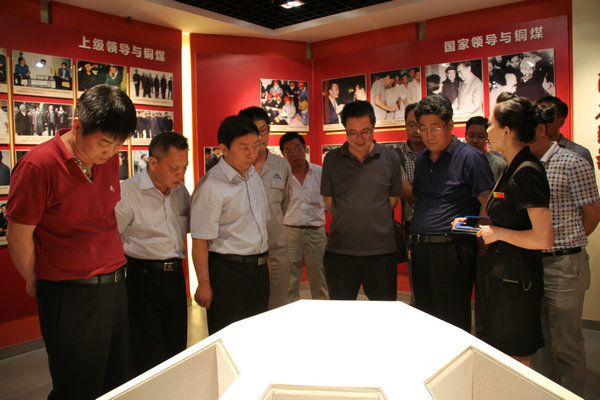 6月11日下午,陜西美鑫產(chǎn)業(yè)投資有限公司領導拓劉毅、封建利帶領該公司全體中層管理人員,在銅川礦業(yè)公司黨委書記郭寶輝,黨委副書記、紀委書記徐捷的陪同下一同參觀了銅煤文化展覽館,感受銅煤精神,領略銅煤風采。