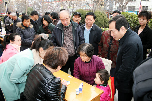 上午10時左右,公司黨委書記王蓬,黨委副書記、紀委書記徐捷與黨群有關(guān)部門負責人也興致盎然地來到了活動現(xiàn)場,與正在現(xiàn)場忙碌的志愿者和服務(wù)對象進行了深入交流。在奧博集團志愿者服務(wù)點,王書記看到手機免費貼膜時,饒有興趣地拿出自己的手機,向青年志愿者咨詢貼膜的詳細情況,現(xiàn)場氣氛活躍融洽。在直屬工委服務(wù)點,王書記和徐書記詳細觀摩了電子測糖儀查體的全過程,親切叮囑查體老人要注意身體健康。隨后,兩位領(lǐng)導逐一到各單位的青年志愿者服務(wù)點詳細了解活動開展情況,提出了要求和建議,并對此次活動的成效給予了充分的肯定。