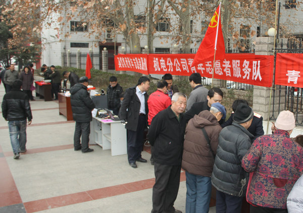 當天上午,公司團委組織鐵運公司、供用電分公司、奧博集團、多經(jīng)公司、救護大隊、機電公司、直屬工委等單位近50余名青年志愿者,圍繞職工群眾生活所需,在公司大門兩側(cè)開展了以安全知識宣傳、健康查體、維修家電、焊補鍋盆、手機貼膜、測血糖、理發(fā)等形式多樣、獨具特色的系列便民服務(wù)活動。
