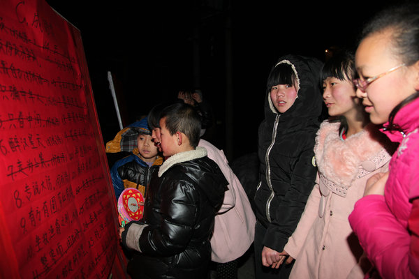 猜謎現(xiàn)場,老少男女聚集在該礦工會精心挑選的百余條包含安全寄語、生活常識、成語字謎以及人名地名的謎語前面,有獨自冥思苦想思索著謎底的,有三三兩兩在笑聲中熱烈討論著謎面的。不時人群中傳來一陣陣的歡呼,那是猜對謎底的“幸運人兒”獲得禮品時引發(fā)的贊嘆。此次活動,不僅豐富了礦區(qū)職工群眾的文化生活,促進(jìn)了彼此間的相互交流,亦使大家在學(xué)習(xí)安全知識的氛圍中度過了一個歡樂喜慶祥和的元宵佳節(jié)。