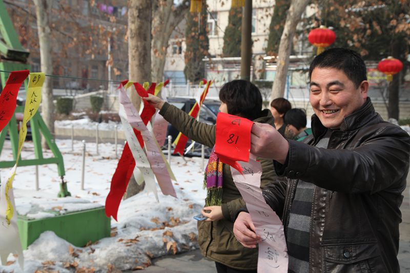 活動現(xiàn)場,紅、綠、紫、黃等多種顏色的百余條燈謎,讓聞訊趕來的職工家屬感受到了元宵佳節(jié)的喜慶氣氛。在懸掛謎語的彩條前,職工家屬或單兵作戰(zhàn),或父子上陣,或全家總動員,開動腦筋,集思廣益,破解燈謎。燈籠、彩旗、燈謎、人群匯成礦區(qū)一道亮麗的風(fēng)景線。