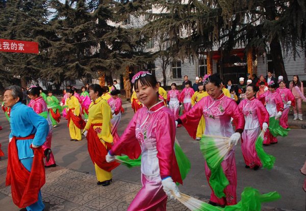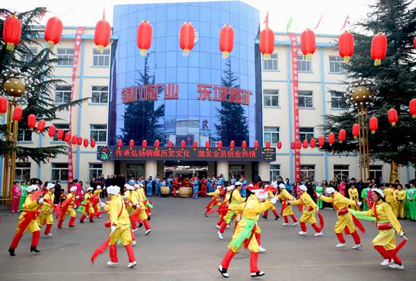 (李勝會 李銅川 李銀鎖報道)農歷大年初一,喧天的鑼鼓在日新月異的金華山礦區(qū)回蕩,恭祝礦山人民新年事事如意,馬到成功;歡快的秧歌讓礦區(qū)干部職工精神振奮,增強戰(zhàn)勝煤炭市場嚴寒的信心和勇氣;甜美的歌兒唱出礦區(qū)人民對幸福生活的美好憧憬,實現(xiàn)中國夢、實現(xiàn)礦山夢的的心聲。