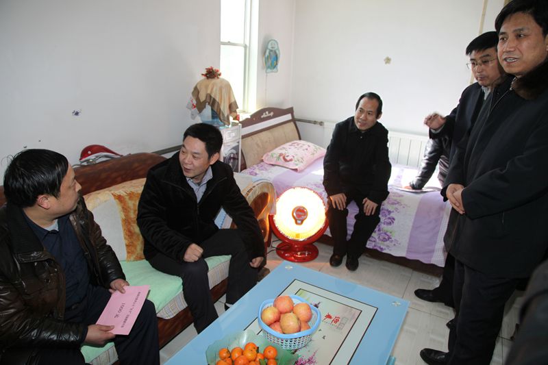 王海帆一行到礦后,顧不上休息,來到困難職工--陜西省勞動模范、金華山礦綜掘隊隊長魏定龍家,在了解了魏定龍同志的工作、家庭、生活等方面情況后,王海帆握住魏定龍的手,親切的說;“我受陜煤化集團公司董事長、總經(jīng)理的委托,代表集團公司黨政來看望你了。感謝你這么多年奮戰(zhàn)在生產(chǎn)第一線,為礦區(qū)安全生產(chǎn)等方面所做的貢獻(xiàn)。今后,你在工作和生活中有什么困難告訴我們和你們礦、公司的領(lǐng)導(dǎo),我們幫你解決。在今后的工作中,希望你發(fā)揮勞模帶頭作用,團結(jié)和帶領(lǐng)全隊干部職工,為構(gòu)建安全穩(wěn)定和諧新礦區(qū)再做新貢獻(xiàn)。同時,祝你全家新年快樂?!?/p>