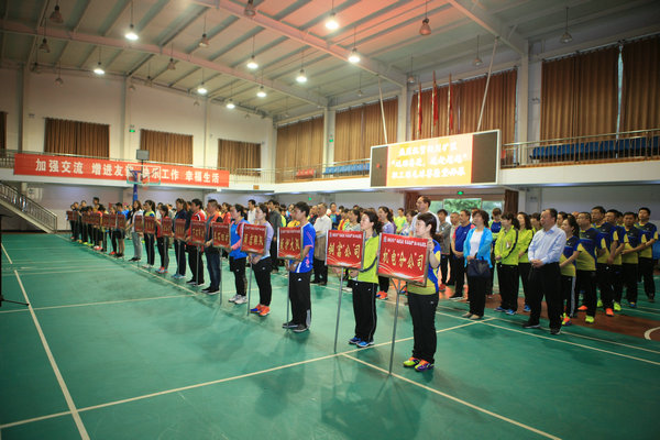 在開幕儀式上,運動員列隊,裁判員、運動員代表分別進行了宣誓。劉啟科宣布羽毛球賽正式開幕。