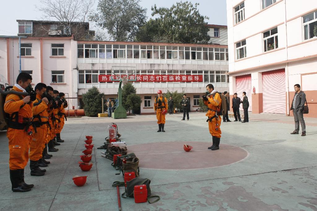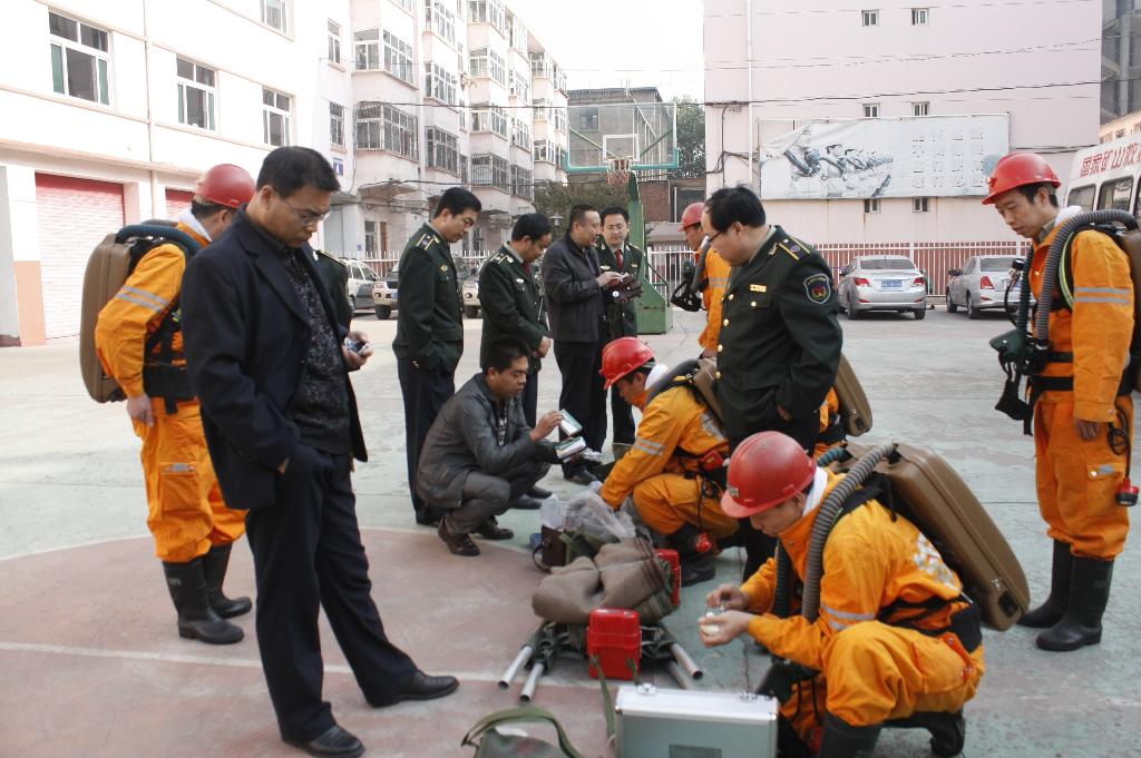 10月28日上午,陜西省煤炭安全生產(chǎn)監(jiān)督管理局質(zhì)量標準化檢查團在團長陳朝輝帶領(lǐng)下對救護大隊2013年度質(zhì)量標準化工作進行檢查驗收。在救護大隊二樓會議室,檢查團聽取了救護大隊今年在隊伍質(zhì)量標準化建設(shè)、搶險救災、業(yè)務(wù)培訓、技術(shù)練兵、基礎(chǔ)設(shè)施建設(shè)、隊伍建設(shè)等方面工作的匯報以及今后的工作設(shè)想。隨后,檢查團按照《礦山救護隊質(zhì)量標準化考核規(guī)范》的相關(guān)規(guī)定,分別對聞警出動、戰(zhàn)前檢查、內(nèi)務(wù)管理、現(xiàn)場急救包扎、戰(zhàn)備庫房等項目進行了檢查驗收。