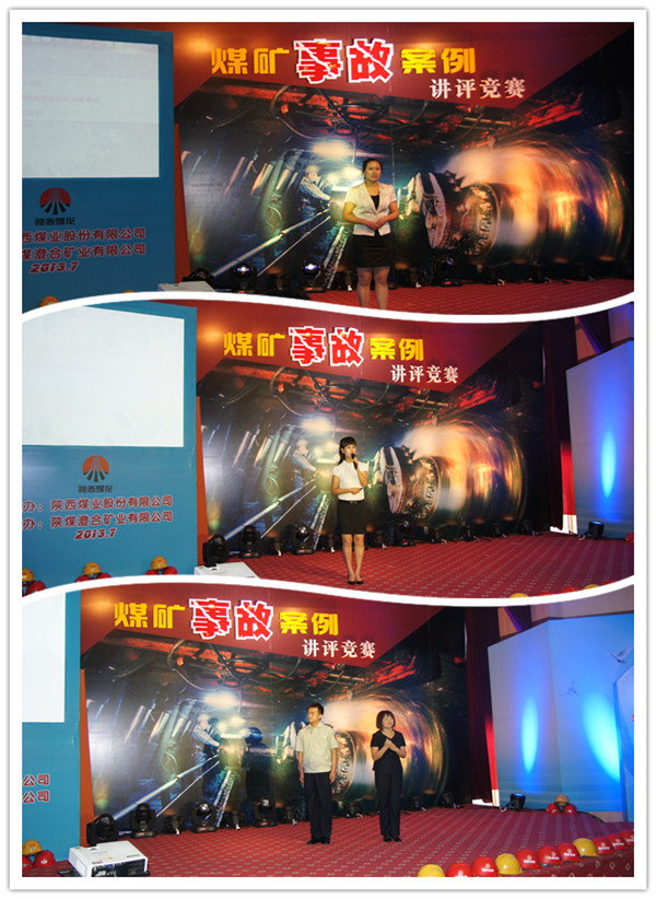 本次競賽活動共有27組選手參加,大賽取前6名,分設(shè)一等獎1名,二等獎2名,三等獎3名。公司副總經(jīng)理、安監(jiān)局長劉水利帶隊參加了競賽活動。參賽選手經(jīng)過一天激烈的角逐,在臺上展現(xiàn)了良好的精神風(fēng)貌,與制作精美的PPT相配合,以生動的演講、深刻的剖析、精彩的情景演示,贏得了評委和觀眾,公司獲得團體成績第二名,下石節(jié)礦張?zhí)?、鴨口礦耿妮妮兩位選手分獲二、三等獎。