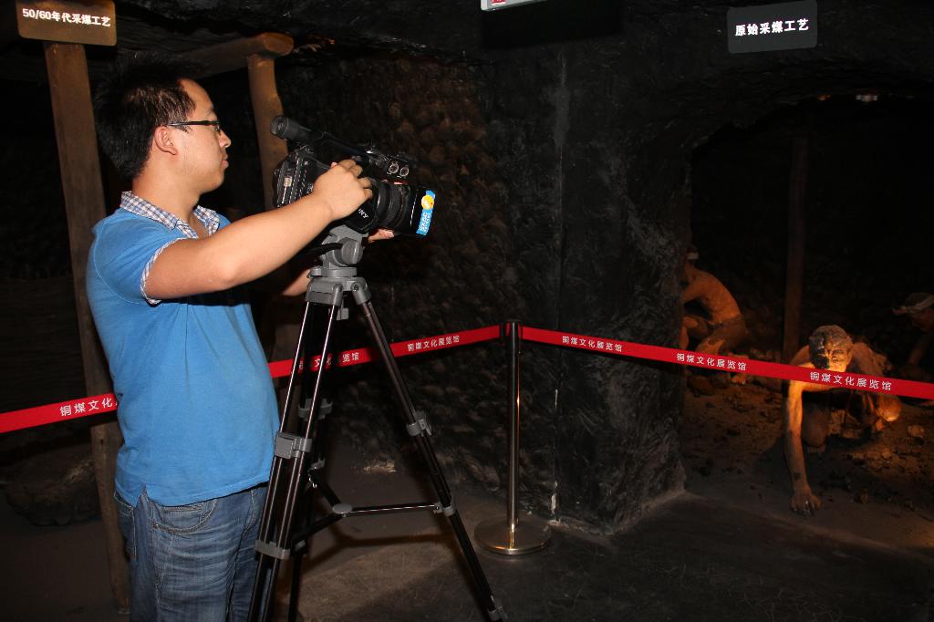 陜西電視臺記者在展覽館內(nèi)進行拍攝