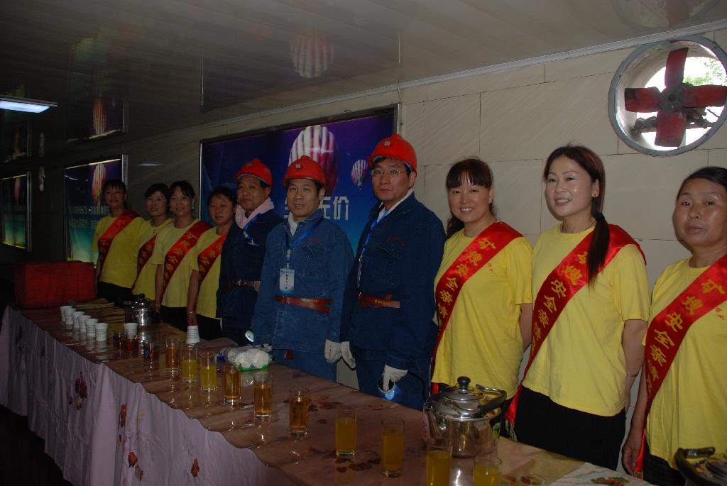 到礦后,王蓬書記一行顧不上休息,在礦辦公樓門前與該礦領(lǐng)導(dǎo)簡單交流后后,便進入入井更衣室,換好工作服、帶好安全帽,在該礦黨政領(lǐng)導(dǎo)的陪同下,來到井口礦嫂服務(wù)站。在看到礦嫂們?yōu)橐痪€職工準(zhǔn)備的綠豆湯、果汁飲料、茶葉水時,他高興地說:“你們想得細,做得好,很受一線職工歡迎,你們辛苦了!”。并鼓勵礦嫂們要更進一步開動腦筋,創(chuàng)新志愿服務(wù)方式方法,更好地發(fā)揮職工家屬、家庭協(xié)管安全的不可替代的重要作用,為更好地譜寫安全大文章而再立新功。