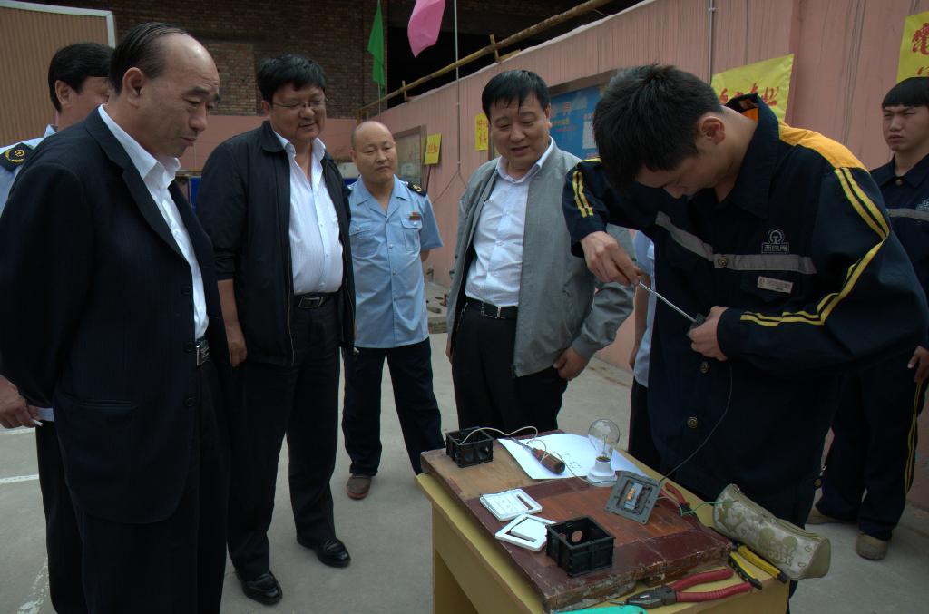 電力專(zhuān)業(yè)組實(shí)際操作比賽分為二大部分,選手首先進(jìn)行對(duì)裁判員給出的圖紙進(jìn)行接線,并確保連線暢通。只見(jiàn)參賽選手埋頭作業(yè),仔細(xì)觀察圖紙,細(xì)心操作。其次,要對(duì)公司河濱路變壓器實(shí)地進(jìn)行實(shí)際的日常維護(hù)、定期檢查的內(nèi)容并對(duì)停、送電的規(guī)范的執(zhí)行進(jìn)行操作,選手們介紹變壓器的聲音洪亮,數(shù)據(jù)準(zhǔn)確,動(dòng)作熟練,并全過(guò)程運(yùn)用“雙述”工作法。