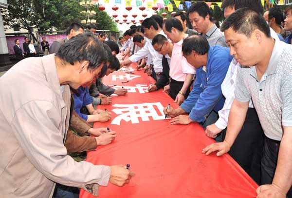 (李勝會 李銅川)“安全是天、安全是地,比天還高、比地還厚,為了礦區(qū)和諧發(fā)展我們豪情萬丈!”上百名干部職工嘹亮的《安全之歌》回蕩在蒸蒸日上的新礦區(qū)上空。 5月31日上午,金華山礦安全生產(chǎn)月活動啟動儀式在礦辦公大院舉行。礦長動員、安全宣誓、安全之歌、鄭重簽名,表明了金華山礦干部職工實(shí)現(xiàn)安全“零”目標(biāo)的堅(jiān)定決心,寄托著全礦干部職工家屬對安全的承諾和構(gòu)建和諧礦區(qū)的良好祝愿。