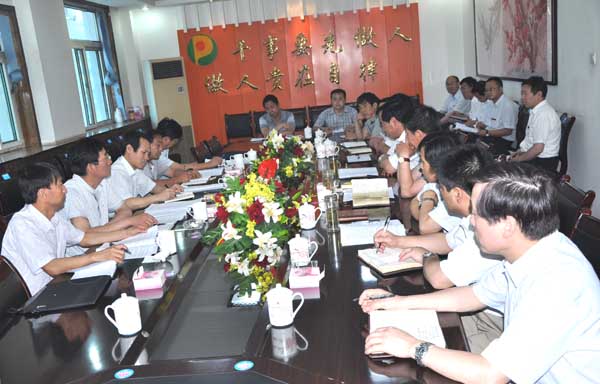 在該礦會議室,王蓬就此次調研目的進行了說明。東坡礦礦長郭全營就東坡礦整體情況進行了匯報。