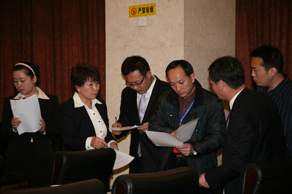 下午,大會代表分組認(rèn)真討論了黨委工作報告,行政工作報告,2013年工作要點及相關(guān)管理辦法等文件。民主測評公司領(lǐng)導(dǎo)班子和領(lǐng)導(dǎo)人員。討論了《工資集體合同》,討論了九屆職代會各專門工作委員會組成人員,征集了提案。企業(yè)方代表與職工方代表簽訂了公司2013年《工資集體合同》,表決通過了九屆職代會各專門工作委員會組成人員,通報了民主測評結(jié)果,全體通過了大會決議。
