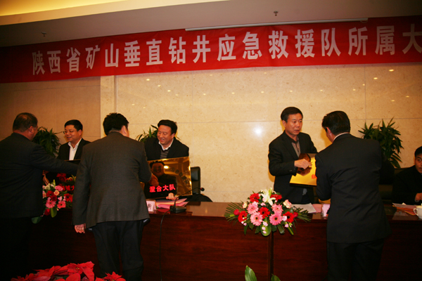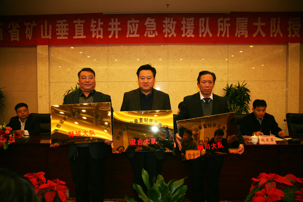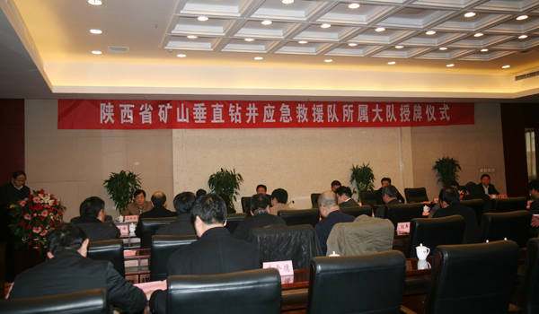 陜西省礦山垂直鉆井應(yīng)急救援隊(duì)所屬大隊(duì)授牌儀式在銅川煤業(yè)賓館舉行