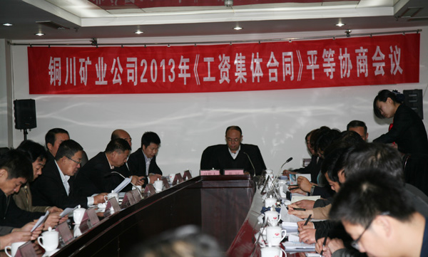 12月6日上午九時,銅川礦業(yè)公司在煤業(yè)賓館會議室召開《2013年工資集體合同》協(xié)商會議。主持人為公司黨委書記黃河。企業(yè)方代表為公司領導宋志剛、劉水利、師同民、薛鳴、封建利及規(guī)劃、勞資、人事等部門負責人,礦區(qū)工會主席劉啟科偕職工代表等代表工會方出席會議,公司兩辦、紀委、宣傳、報社等負責人列席了會議。