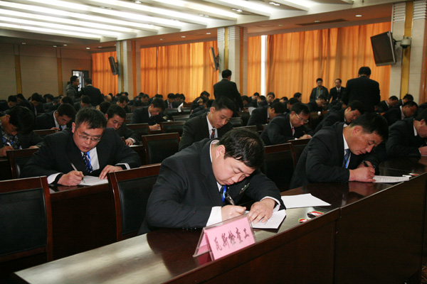 11月20日上午2012年陜西省“銅煤杯”煤礦職業(yè)技能大賽開幕式后,選手馬上投入到緊張的理論考試之中。下午一點(diǎn)整,分別設(shè)在王石凹礦、技術(shù)學(xué)院、救護(hù)大隊(duì)三個(gè)考區(qū)的采煤機(jī)司機(jī)、采掘電鉗工、瓦斯檢查工三個(gè)工種的參賽隊(duì)員開始為期三天實(shí)操比賽。