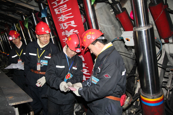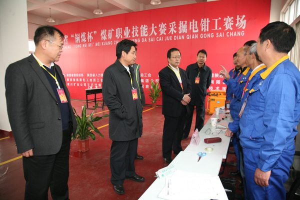 在緊張的實(shí)操現(xiàn)場(chǎng),擔(dān)任此次競(jìng)賽協(xié)調(diào)委員會(huì)主任、陜西省能源化工地質(zhì)工會(huì)主席盧紹彬、副主任陜西省能源化工地質(zhì)工會(huì)副主席薛躍、副主任銅川礦業(yè)公司黨委副書記、工會(huì)主席劉啟科等領(lǐng)導(dǎo)親臨比賽現(xiàn)場(chǎng),為參賽隊(duì)員鼓勁,為大賽的順利進(jìn)行提供保證。
