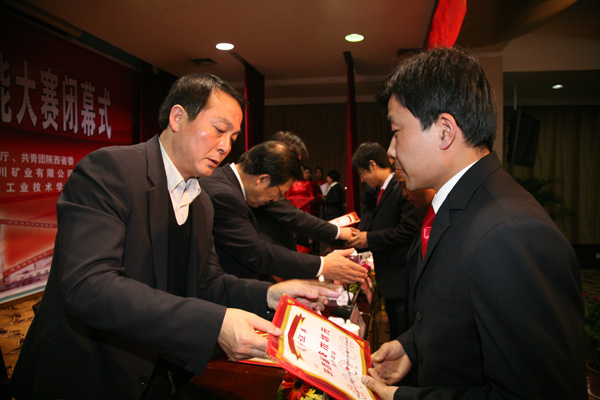 獎儀式。銅川礦業(yè)公司被省委組織部、省總工會等六部門授予團體金獎、“優(yōu)秀組織單位”。白軍鋒、王江江、趙興朝等被授予采煤司機、井下電鉗工、瓦斯檢查工等專業(yè)技術(shù)狀元;劉啟科等人被省能源化工地質(zhì)工會、省煤監(jiān)局評為優(yōu)秀組織個人。