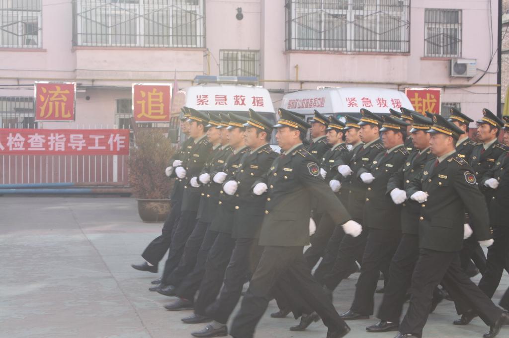 在救護(hù)大隊二樓會議室,檢查團(tuán)首先聽取了救護(hù)大隊一年來在隊伍質(zhì)量標(biāo)準(zhǔn)化建設(shè)、搶險救災(zāi)、業(yè)務(wù)培訓(xùn)、技術(shù)練兵、基礎(chǔ)設(shè)施建設(shè)、隊伍建設(shè)等方面工作開展情況的匯報,以及今后工作的設(shè)想。會后,檢查團(tuán)按照《礦山救護(hù)隊質(zhì)量標(biāo)準(zhǔn)化考核規(guī)范》的相關(guān)規(guī)定,分別對軍事化隊列訓(xùn)練、聞警出動、戰(zhàn)前檢查、內(nèi)務(wù)管理、戰(zhàn)備庫房等項目進(jìn)行了檢查驗收。隨后,檢查團(tuán)又前往銅川新區(qū)實(shí)地察看了國家礦山救援銅川基地新區(qū)項目。