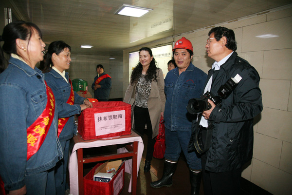 10月16日中午,新華通訊社主任記者何俊昌一行在陜西省婦聯(lián)宣傳部長周芳、銅川市婦聯(lián)主席梁秀霞和銅川礦區(qū)工會副主席梁桂香、女工委主任翟永俠等的陪同下,來到徐家溝煤礦采訪調(diào)研。