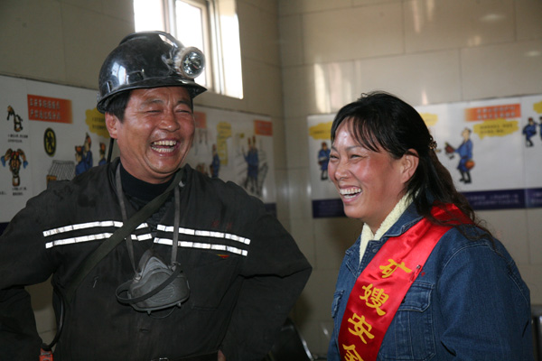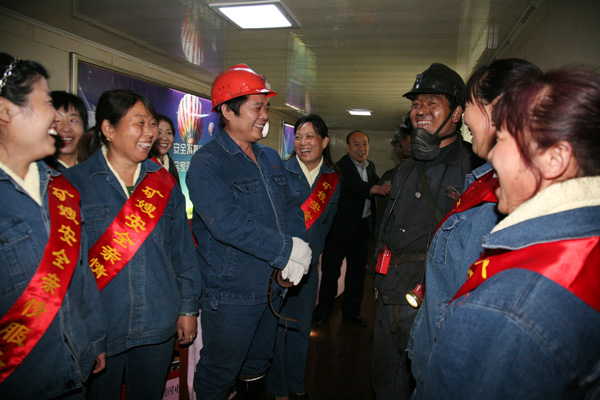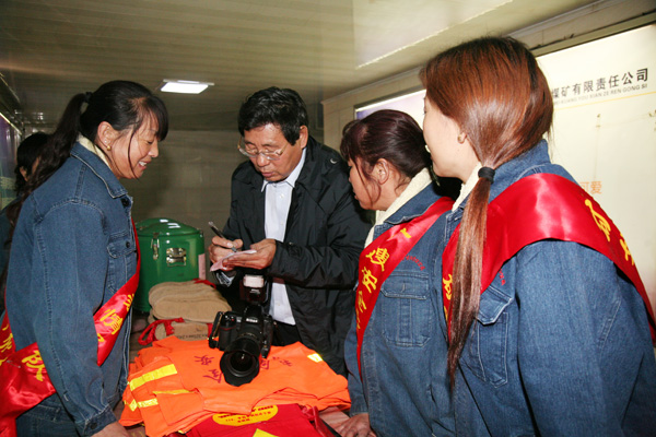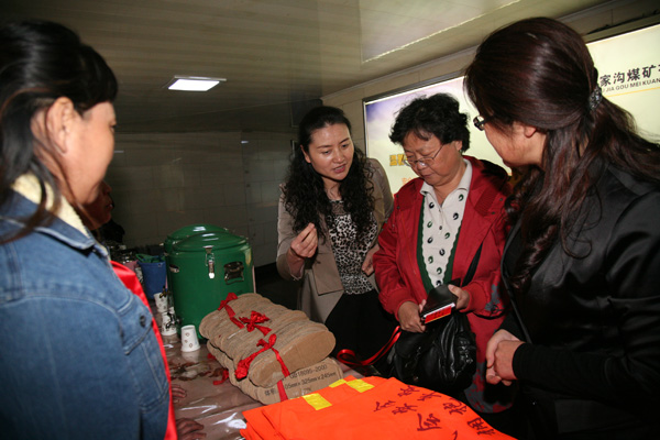 礦嫂們向婦聯(lián)干部們夸贊礦領導的大力支持