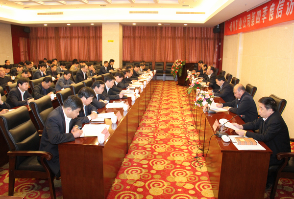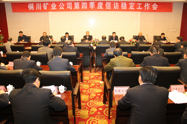 10月24日上午,礦業(yè)公司四季度信訪穩(wěn)定工作會議在煤業(yè)賓館餐廳三樓會議召開。會議的主要任務(wù)是,貫徹落實(shí)省、市信訪會議和公司黨政“10.15”信訪穩(wěn)定專題會議精神,通報三季度信訪穩(wěn)定情況,安排四季度工作任務(wù),動員公司上下把思想和行動統(tǒng)一到上級組織和公司黨政的決策部署上來,以強(qiáng)烈的責(zé)任感、使命感,扎實(shí)做好十八大期間的信訪穩(wěn)定和治安保衛(wèi)工作,為黨的十八大勝利召開營造良好的社會環(huán)境。公司黨委書記黃河、副書記、紀(jì)委書記徐捷、公司原黨委副書記張志文等領(lǐng)導(dǎo)出席會議,虹橋公安分局局長侯小同應(yīng)邀列席會議,公司信訪穩(wěn)定工作領(lǐng)導(dǎo)小組各成員,公司所屬各單位黨委書記、分管信訪穩(wěn)定工作的領(lǐng)導(dǎo)、信訪辦主任、保衛(wèi)科長等80余人參加了會議。