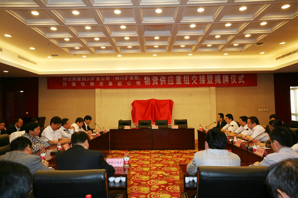 9月13日上午,銅川礦業(yè)公司(銅川礦務(wù)局)和陜西煤業(yè)化工物資集團(tuán)公司在銅川煤業(yè)賓館三樓會議室召開物資供應(yīng)重組整合交接暨揭牌儀式。銅川礦業(yè)公司總經(jīng)理宋志剛,黨委副書記、工會主席劉啟科,黨委副書記、紀(jì)委書記徐捷,副總經(jīng)理封建利,陜西煤業(yè)化工物資集團(tuán)黨委書記、董事長沈蘭禹,黨委副書記、總經(jīng)理高暐等出席會議。會議由銅川礦業(yè)公司黨委副書記、工會主席劉啟科主持。陜煤化集團(tuán)企管部、人力資源部,陜煤股份公司財務(wù)資產(chǎn)部,物資集團(tuán)機(jī)關(guān)各部門,銅川礦業(yè)公司所屬各單位和機(jī)關(guān)部門負(fù)責(zé)人共60余人參加了此次揭牌會議。