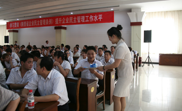 8月30日上午,陜西煤業(yè)化工集團(tuán)公司《陜西省企業(yè)民主管理?xiàng)l例》知識競賽銅川賽區(qū)預(yù)賽在王石凹煤礦中心會議室隆重舉行,來自集團(tuán)公司所屬的銅川礦業(yè)、黃陵礦業(yè)、陜煤建司、彬長礦業(yè)和陜焦化工五支代表隊(duì)共同參加了比賽。
