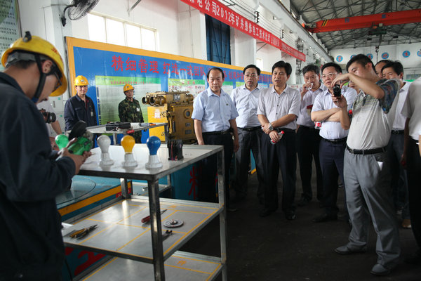 在新鄭煤電公司,劉書記一行先后參觀了該公司地面企業(yè)文化長廊、調(diào)度中心、礦燈房、主提升機房、并在機修隊觀看了該公司職工表演的“雞蛋推礦車”、“燈泡上切鐵絲”、“電鉆剝雞蛋”、“蒙眼劃圓割鐵片”等“絕招、絕技、絕活”表演。