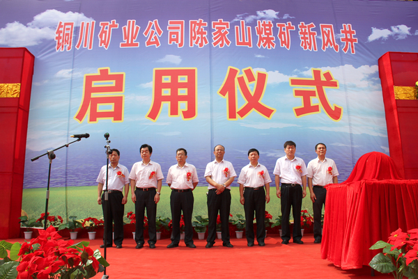 7月30日上午,銅川礦業(yè)公司陳家山礦新風(fēng)井啟用儀式在該礦安子溝工業(yè)廣場(chǎng)隆重舉行。礦業(yè)公司總經(jīng)理宋志剛、黨委書記黃河,公司副總經(jīng)理、安監(jiān)局長劉水利、黨委副書記、紀(jì)委書記徐捷、副總經(jīng)理、總工程師師同民、副總經(jīng)理封建利,公司各副總、機(jī)關(guān)各部室負(fù)責(zé)人,有關(guān)兄弟單位黨政主要領(lǐng)導(dǎo)、設(shè)備生產(chǎn)廠家、施工單位和省市有關(guān)新聞媒體,陳家山礦黨政領(lǐng)導(dǎo)及干部職工數(shù)百人參加了儀式。